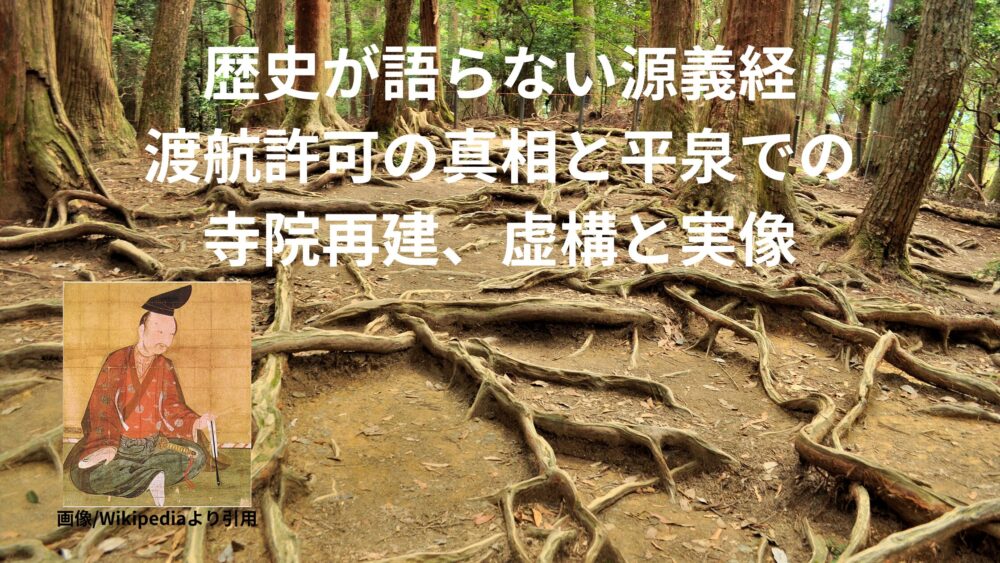 源義経は、戦場での奇策だけで語り尽くせる人物ではありません。幼少期に鞍馬寺で身につけた貴族的教養は、常識に縛られない発想や美意識の基層となり、その後の戦術や立ち振る舞いに独自性を与えました。頼朝と対立後に語られる「渡航許可」説は一次史料で確証しがたいものの、内外に活路を求める柔軟さを映す伝承として読むと、義経像は一層立体化します。さらに平泉では、奥州藤原氏が主導した宗教・文化事業の只中に身を置き、地域社会の秩序や復興と接点を持った可能性が高く、「匿われた悲劇の客人」という単線的な見方も相対化されます。
